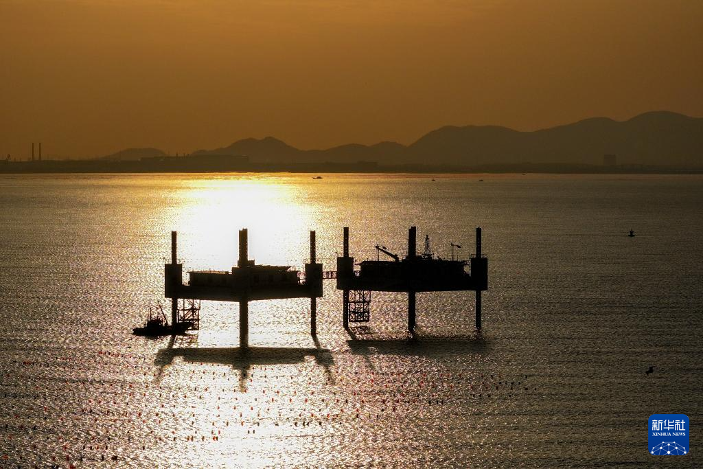 11月10日拍摄的山东省青岛市即墨区金口镇丁字湾海域养殖区(无人机照片)。