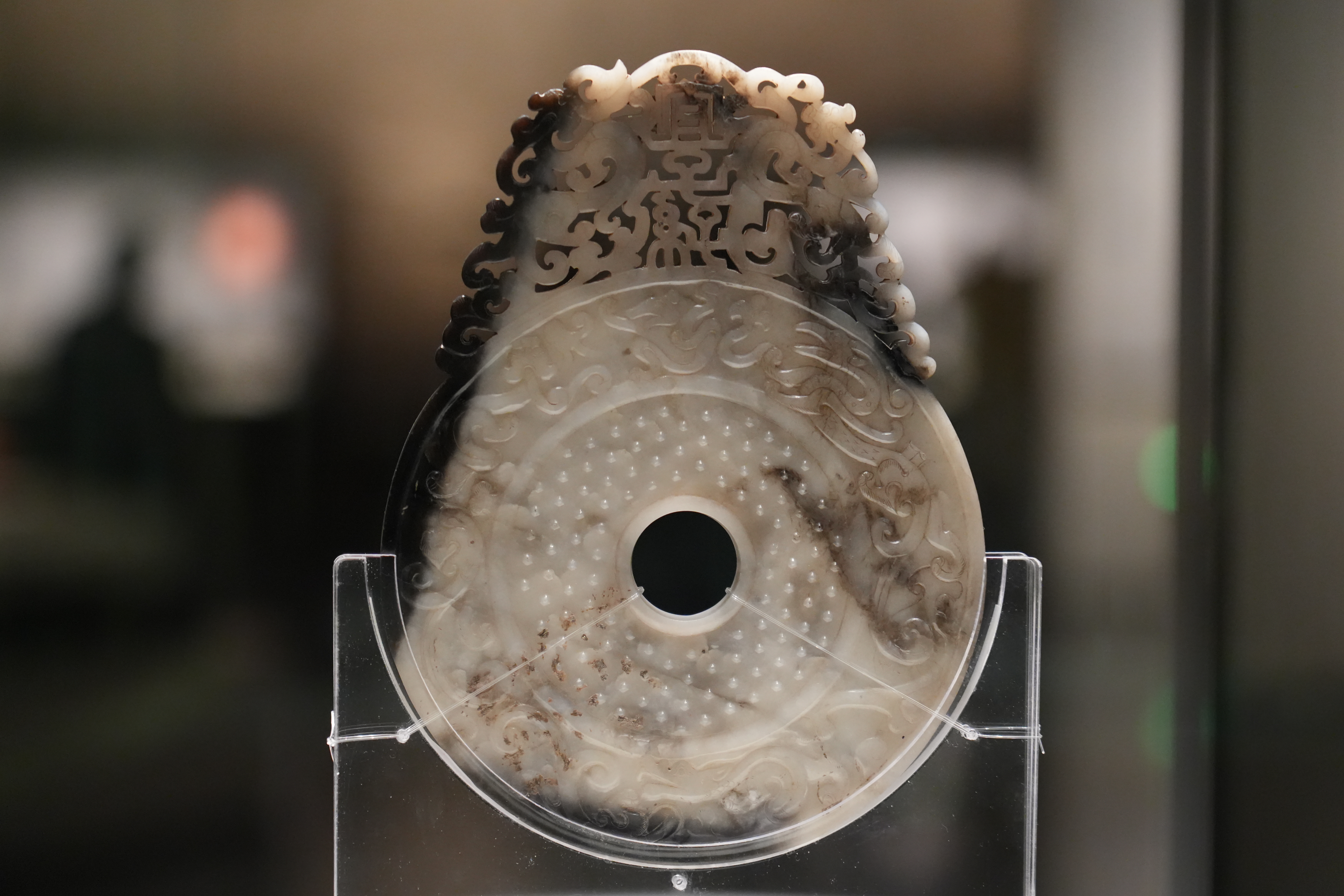 1982年,东汉“宜子孙”玉璧成为青州博物馆最早入馆的“镇馆之宝”。玉璧采用新疆和田玉雕琢而成,高20.8厘米,外径15.4厘米,内径2.6厘米,重375克,是国内迄今为止发现的最完整、最大、质地最优、艺术性最高的一件玉璧。
