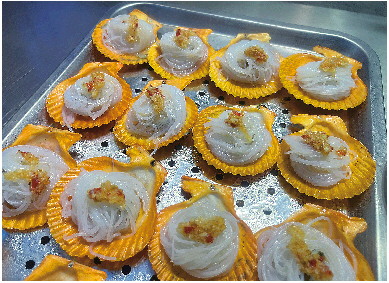 在济南某美食街的摊位前,记者以15元购买了一份6个装的蒜蓉粉丝烤扇贝。仔细观察后记者发现:扇贝壳呈现均匀的靓丽橙红色,内外颜色毫无差异,内侧更是光滑得近乎发亮。用筷子夹起贝肉,松散的肉质瞬间与贝壳分离,入口后只有浓重的腥咸味,丝毫没有新鲜扇贝的鲜甜。