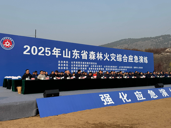 11月16日上午,2025年山东省森林火灾综合应急演练在淄博市举行。