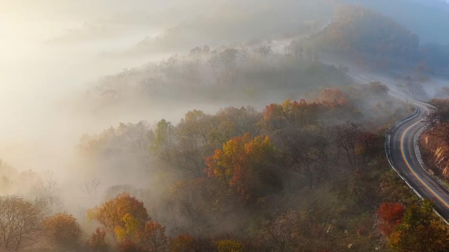 山雾如轻纱漫卷,晕染出一幅朦胧的水墨长卷。张弘 摄