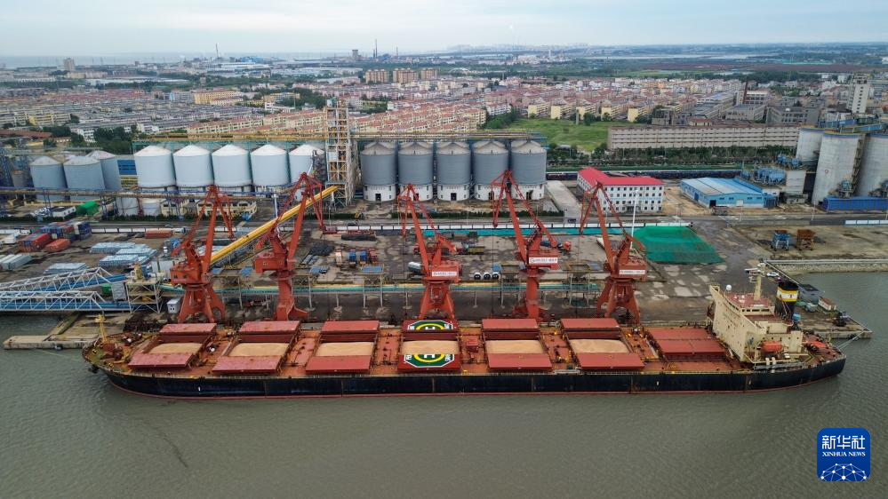 船只靠泊在龙口港(7月2日摄,无人机照片)。新华社记者 徐速绘 摄