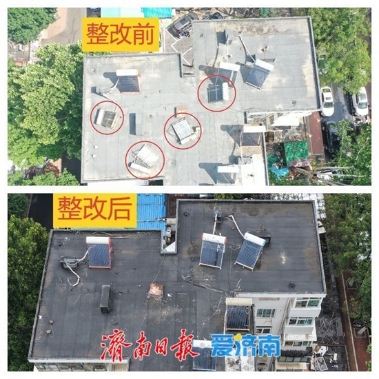 第五社区是建成30多年的老旧小区,32栋居民楼的楼顶布满了年久失修的太阳能热水器——支架锈蚀断裂,水箱漏水结冰,有的甚至被大风刮得摇摇欲坠,成了悬在居民头顶的“定时炸弹”。“万一掉下来砸到人,后果不堪设想!”小区党支部在安全巡查中发现隐患后,立刻召开紧急支委会,组建由党员、网格员、物业维修人员组成的攻坚小队。为了摸清底数,他们用上了“无人机航拍+人工爬楼排查”的组合方式,逐栋登记设备位置、产权人信息,深入排查楼顶太阳能热水器3633台。