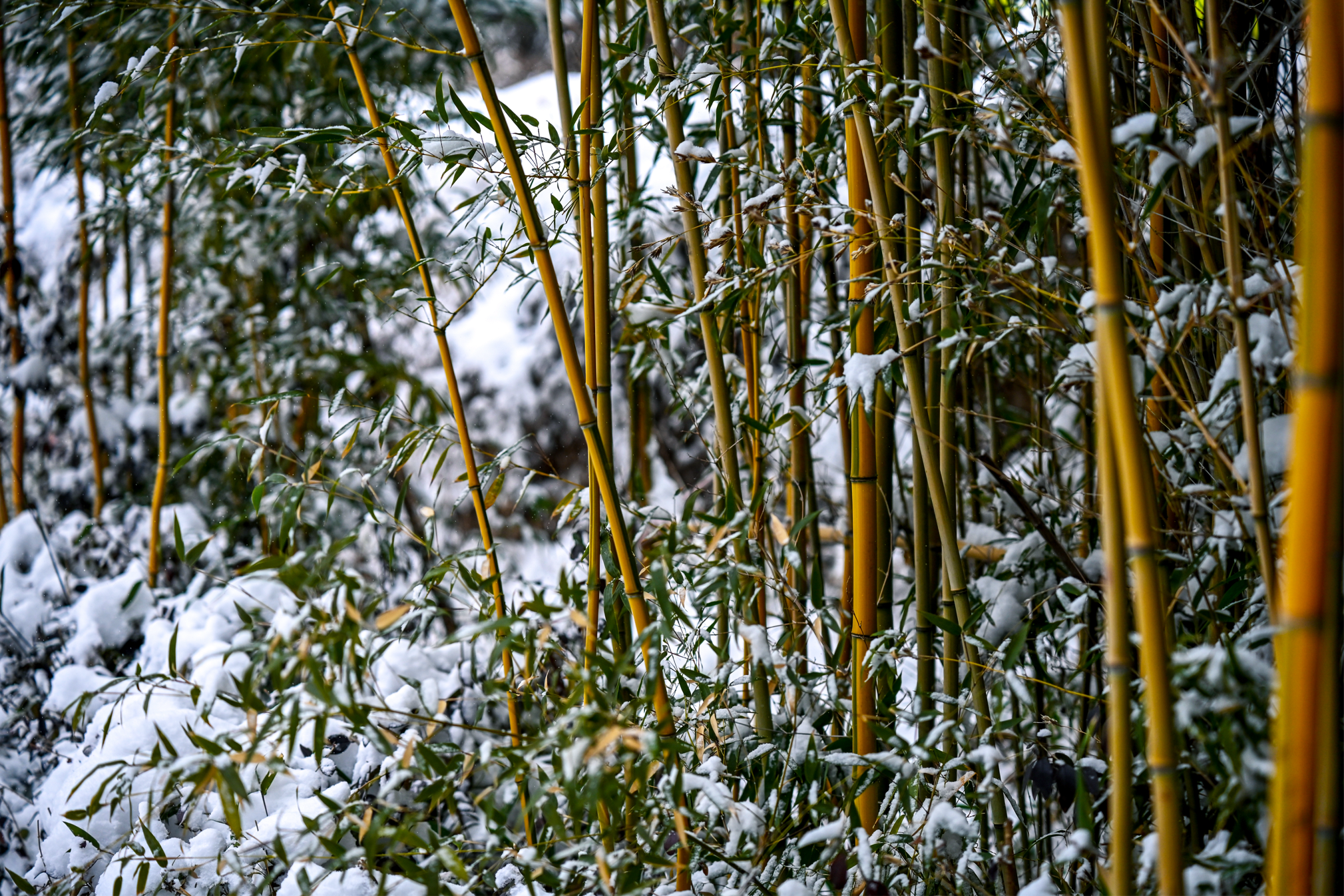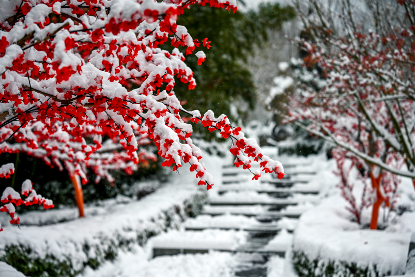 沿着积雪的石阶缓步前行,琼枝玉树间,红果缀满枝头,白雪压弯了枝桠,红与白的碰撞,是冬日最热烈的色彩对话。金黄的凤凰雕塑傲立雪中,青铜山大峡谷的标识在雪色里更显古朴厚重,而竹林在白雪的映衬下,竹影婆娑,更添了几分清雅的诗意。