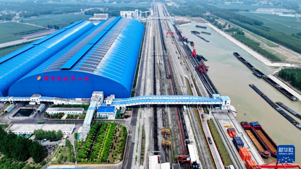 在济宁龙拱港,几艘满载煤矿和机械装备的货轮陆续靠港。码头上,由数字系统远程调度的无人平板车已提前就位,准备对接岸桥进行自动化装卸。