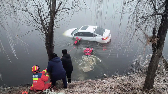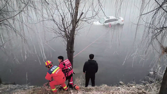 12月24日6时55分,济南市济阳区回河街道东药王庙村东区域遭遇大雾天气,能见度大幅降低,致使一辆机动车不慎驶入河中。接到报警后,济南市消防救援支队银河路消防救援站迅速响应,立即出动1车7人赶赴现场实施救援。