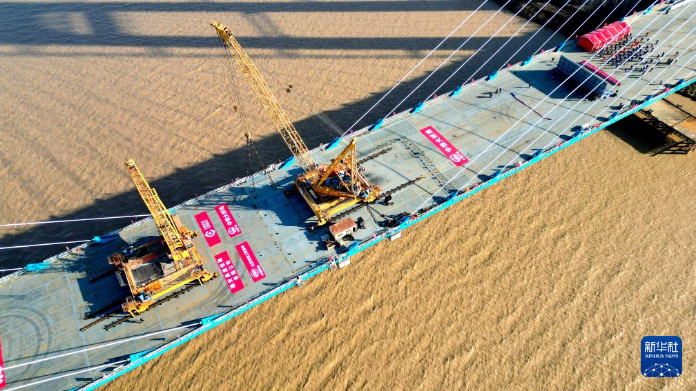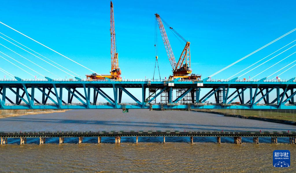 12月31日,津潍高铁东营黄河公铁大桥顺利合龙,为后续铺轨通车奠定基础。据了解,该桥是津潍高铁全线的重点控制性工程,全长2230.4米,由主桥、副桥和引桥三部分组成,下层为双线高速铁路,上层为双向六车道一级公路。津潍高铁是国家“八纵八横”高铁网中京沪通道和沿海通道的重要组成部分,也是京津冀协同发展、连接山东半岛和长三角地区的重要交通干线。新华社记者 朱峥 摄