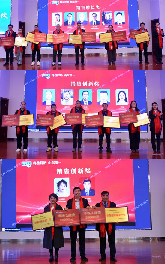 会议现场,得益乳业营销事业部关纪良公布《2025年经销商获奖名单》,对过去一年在积极响应市场需求、创新服务终端消费者、推动销售业绩增长等方面表现卓越的经销商予以表彰。三位优秀经销商代表结合多年一线服务实践,分享了他们如何将得益高品质牛奶送达更多消费者的实战经验。