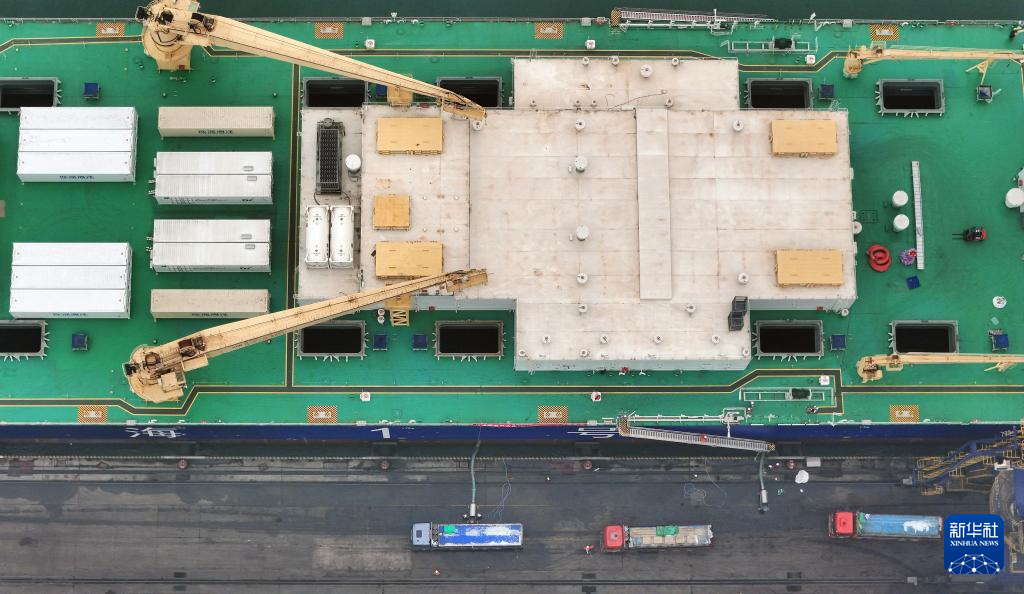 1月16日,16万尾由烟台本地企业培育的三文鱼鱼苗在山东港口烟台港装入10万吨级养殖工船“苏海1号”。随后该船将开赴适宜海域开展游弋式养殖。这是山东省港口集团首单三文鱼养殖工船装舱业务,标志着国产三文鱼“陆海接力”养殖物流通道进一步拓宽。新华社发(唐克摄)