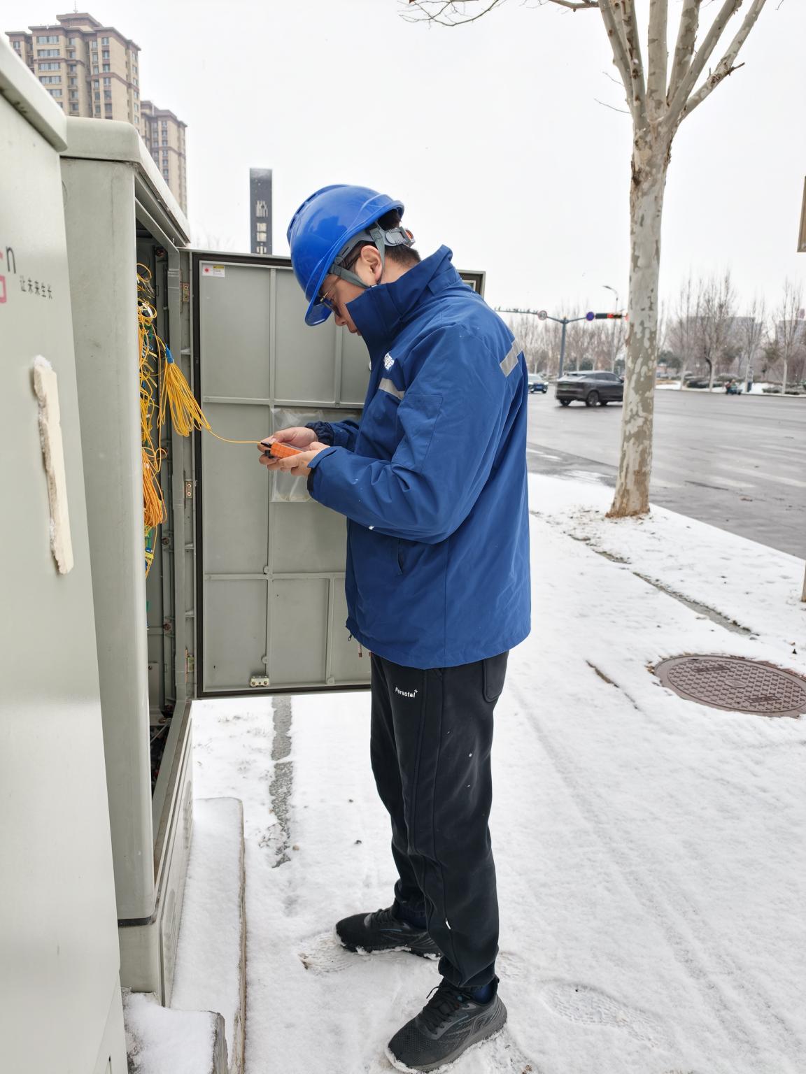 风雪就是命令,畅通就是责任。一支支身着蓝色工装的装维突击队顶着凛冽寒风,踏上保障征程。他们肩扛沉重的熔纤机、光功率计等专业设备,穿梭在积雪覆盖的街巷与小区中。无论是检查被积雪压弯的户外光缆,还是攀爬湿滑的电杆进行高空作业,每一个环节都一丝不苟。