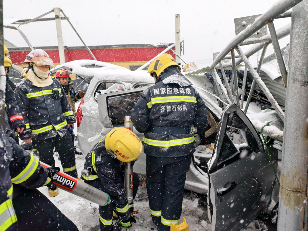 齐鲁石化消防支队指战员救援被困群众 李壮 摄