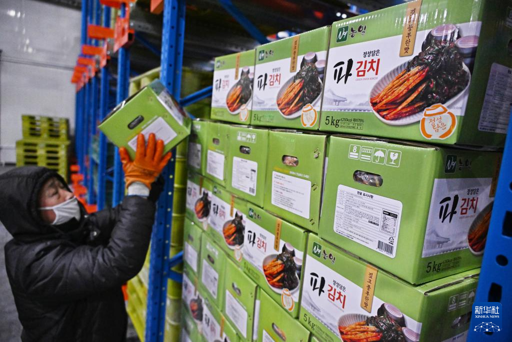 1月29日,青岛农一食品有限公司员工在包装销往韩国市场的泡菜。新华社记者 李紫恒 摄