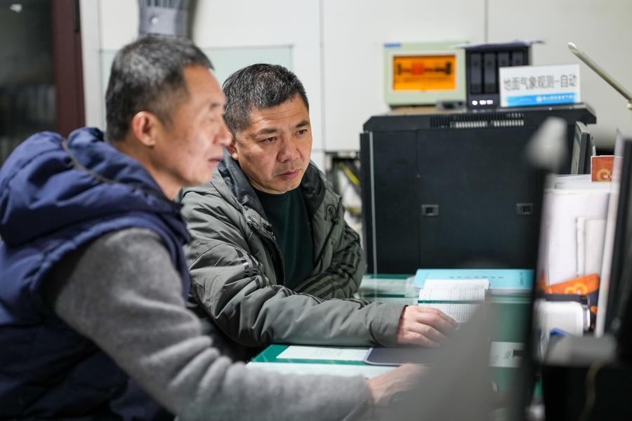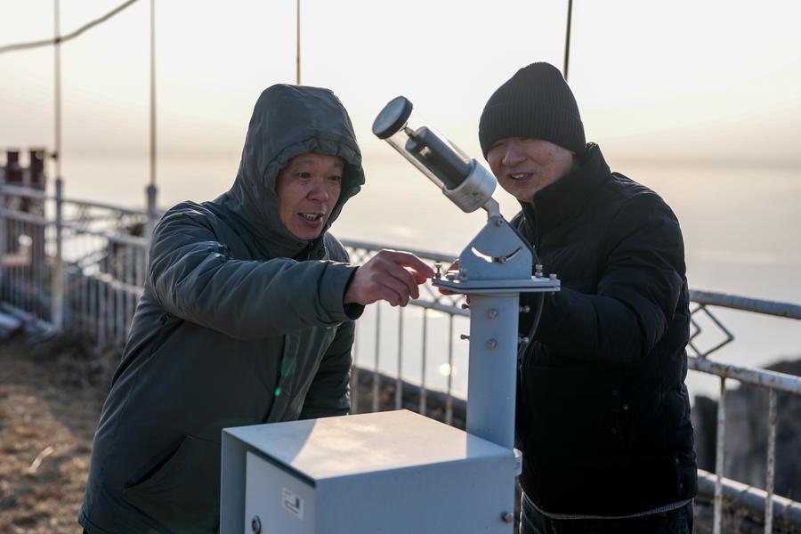 新华社济南2月9日电(记者滕军伟)“能见度25公里,云量10-,云状密卷云……”晚上8点,在山东泰安市泰山峰顶的泰山气象站,观测员刘恒德和杨正民正在户外冒着严寒,记录气象数据。