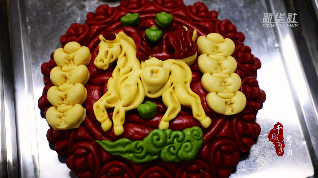 在仿山镇一家手工花饽饽工坊内,热气腾腾,麦香与果蔬清香交织。工人们分工协作,揉面、塑形、雕花、蒸制,一道道工序有条不紊。花饽饽造型多样,既有生动的骏马样式,也有融合福袋、锦鲤等元素的创意设计。制作中采用南瓜、菠菜等天然食材着色,既保留传统技艺的精髓,又融入了现代健康理念。