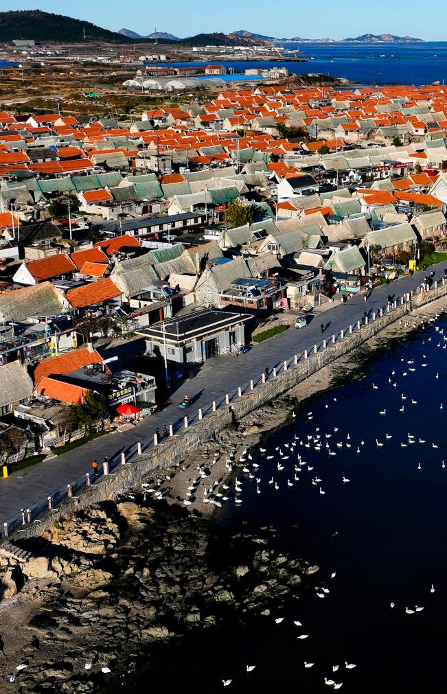 “孩子第一次看到这么多天鹅,特别兴奋。”来自北京的游客刘畅和家人,今年特意选择在烟墩角过年。“天鹅给我们带来了新日子,也带来了许多新‘村民’。”于海洋说,他前些年接待过的多名外地游客,因为喜欢这个渔村,如今都成了烟墩角村多个民宿的老板。