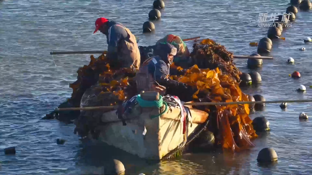 近日,山东省荣成市爱伦湾海洋牧场海带养殖区一派繁忙景象,养殖户对近岸养殖区达到成熟标准的海带分批及时收割,为后期收割的海带留出生长空间,以便提高海带的产量和质量。