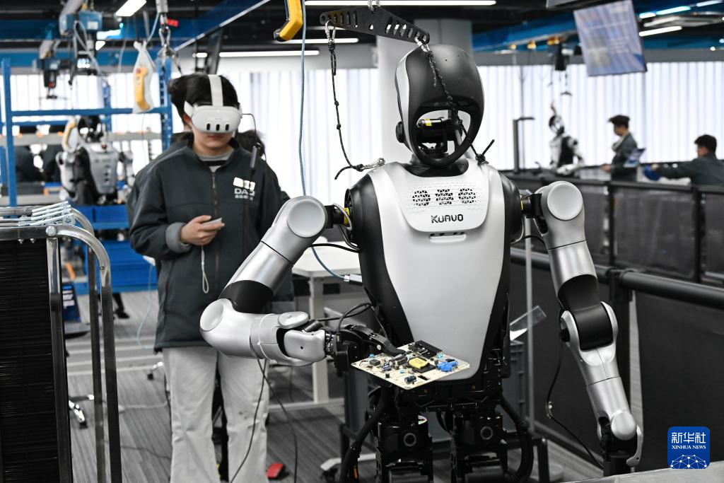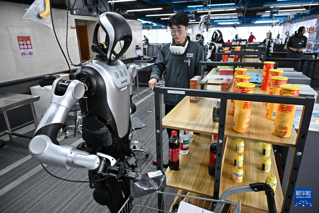 这是在青岛市人形机器人数据采集训练场拍摄的工作场景(3月23日摄)。新华社记者 李紫恒 摄