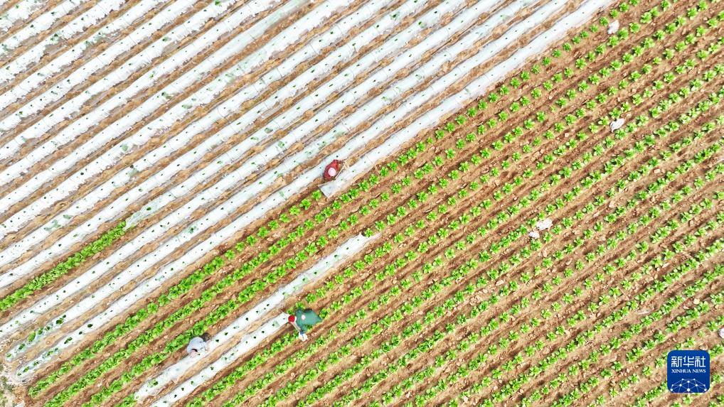 3月23日,在山东省临沂市郯城县郯城街道,农民在蔬菜种植基地劳作(无人机照片)。新华社发(张春雷摄)