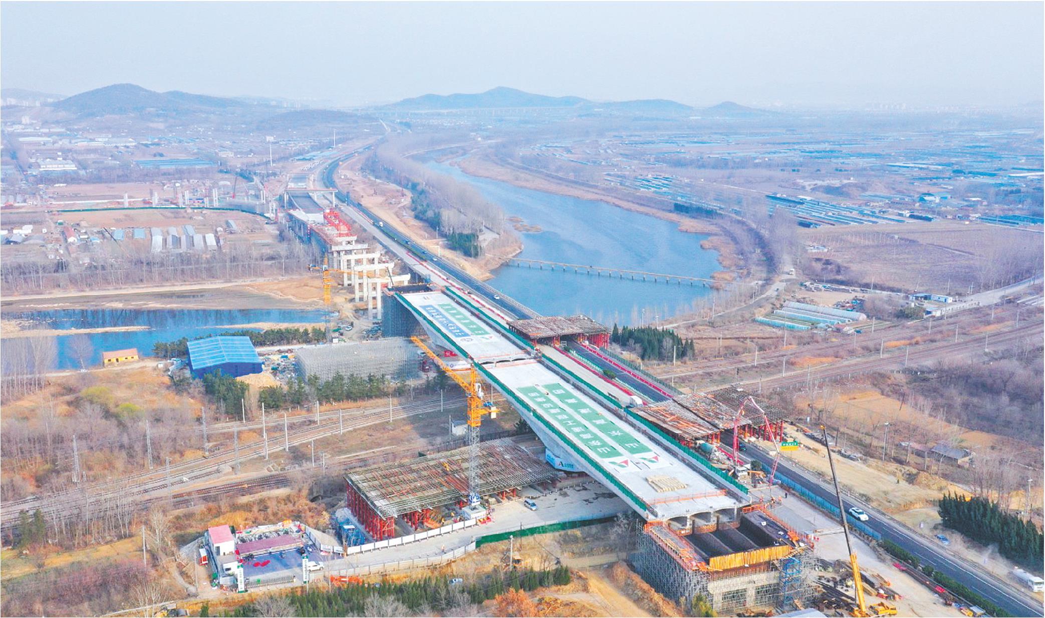 3月24日凌晨,由山东高速集团投资建设的荣乌高速烟台枢纽至蓬莱枢纽改扩建工程(以下简称“烟蓬改扩建项目”)上跨蓝烟铁路转体桥顺利完成转体,与主线实现精准对接。