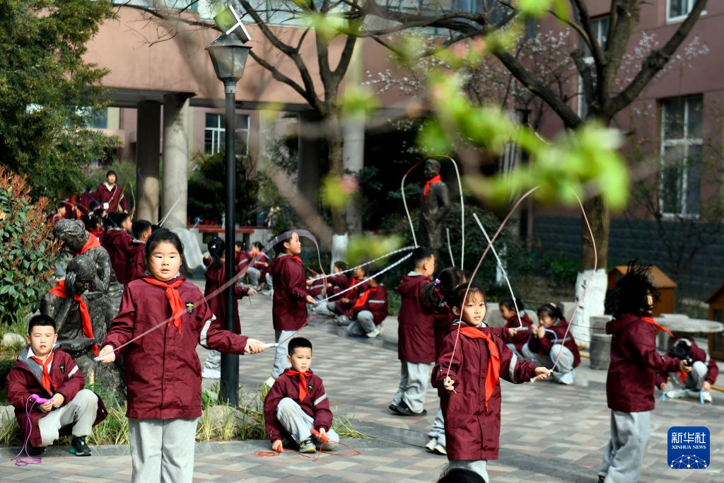 3月26日,在日照市莒县第一实验小学,同学们在进行阳光大课间活动。新华社记者 郭绪雷 摄