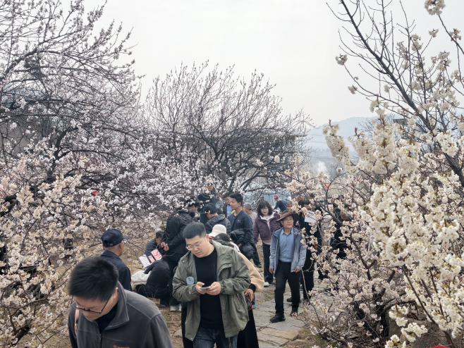 3月22日清晨,叩官镇大旺村周边数公里的道路上,密布的车流源源不断汇入。细细望去,不乏大批来自天津、江苏、青岛等省市的外地车牌,不少游客专程驱车赶来,只为赴这场繁花之约。