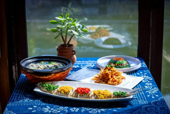 黄昏慢时光,来到谢裕大茶行,临窗而坐。黄昏的光线温柔地洒进木质窗棂,一壶好茶,几碟茶点,看着摇晃的摇橹船,听远处传来的水乡小调。这是属于台儿庄的下午茶,不急不躁,等夜幕降临。