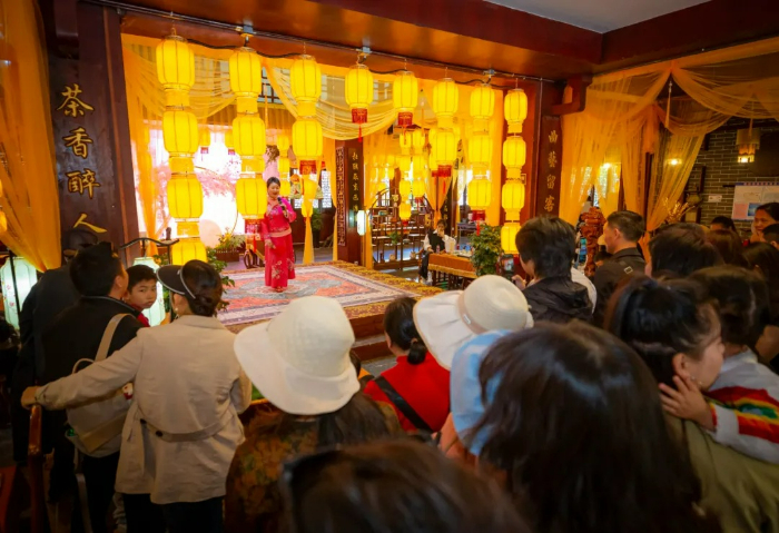 台儿庄古城的演艺,是一场打破边界的沉浸之旅。跟着演出时间表,街巷转角处,情景剧与快闪随时发生,行人从旁观者变为故事的一部分;这里没有固定的座位,没有清晰的界限,只有持续地互动与沉浸,让每个人都成为运河叙事的主角。