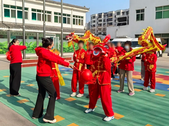 志愿者们不仅带来了音乐互动训练仪、集体认知积木等康复教具,更带来了温暖的陪伴。早在2024年,济南福彩结合孩子们的需求,送去了舞龙服和舞龙队道具,在启明星教师团队的精心引导下,小小的舞龙队已经有模有样。今年,孩子们手持精致的舞龙、舞狮道具,在老师的引导下进行表演,尽管步伐尚不整齐,但那份全情投入的模样,深深感染了在场的每一个人。