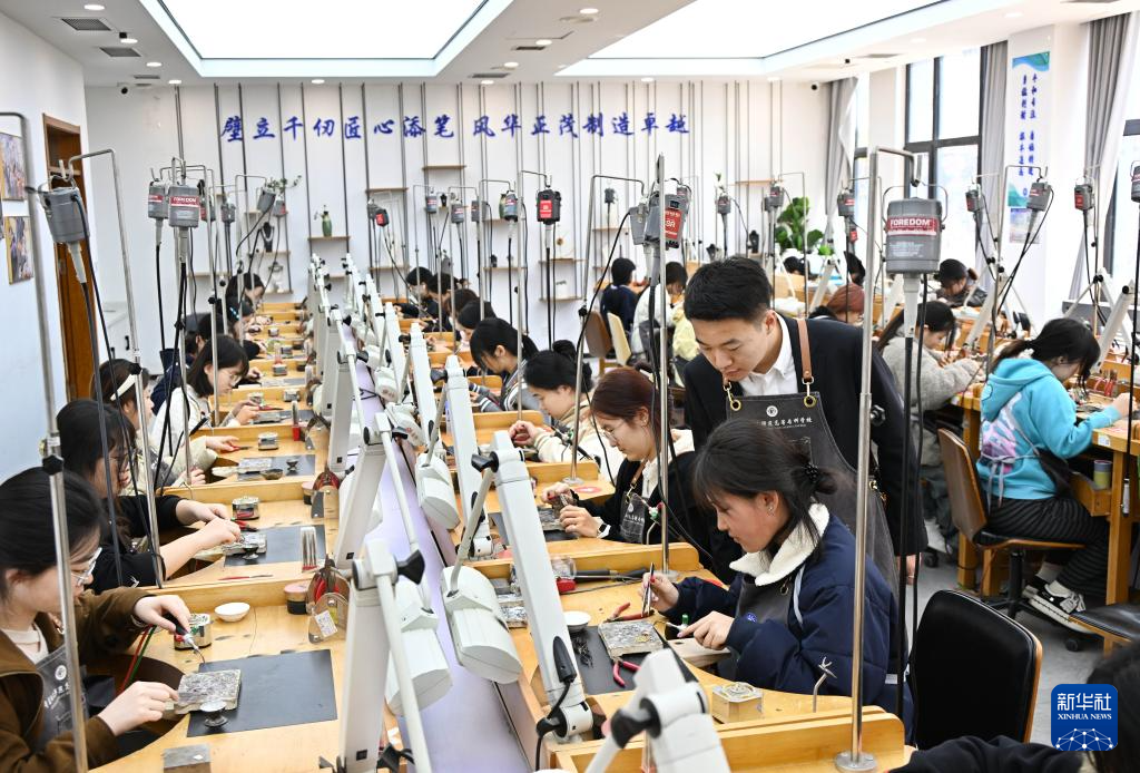 近年来,山东青岛幼儿师范高等专科学校珠宝学院依托校内实训基地和生产性实训平台,将珠宝行业全流程实操场景搬进课堂。学生在这里不仅能学习珠宝专业理论,练习宝玉石鉴定、加工、琢磨等传统技艺,还能学习AIGC首饰设计、3D建模、数码影像、直播带货等数字化技能,参与企业真实订单生产、产品质监检测等实战环节,掌握当下珠宝行业所需的复合型技能。新华社记者 李紫恒 摄