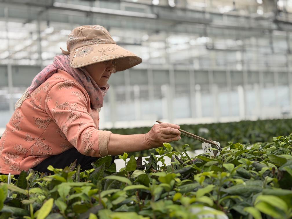 在日照茶叶科创示范园2号温室,村民谭宝荣脚下轻快一蹬,带有轮子的凳子便带她挪至一片茶苗,她手持筷子,将落叶一一挑出。“传统的种育模式成长周期长,存活率低,园区采用的多根无性茶苗快繁技术不但能提升茶苗质量,还能将茶叶的开采时间从3年缩短至12个月内。”巨峰镇副镇长丁肇亮说。
