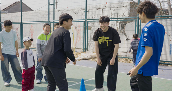 热身过后,志愿者们结合自己所学的足球运动与管理专业知识,教孩子们控球、传球、跑位等基础动作,逐一纠正姿势,耐心示范要领。