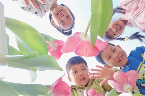 济南市历下区百合幼教集团的孩子们捕捉春的气息。
