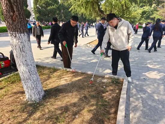 活动中,团员们自发开展环境卫生维护行动。大家手持垃圾夹、环保袋等工具,仔细清理陵园道路、纪念广场及烈士墓区周边的落叶、纸屑等杂物,并对卫生死角进行了细致打扫。