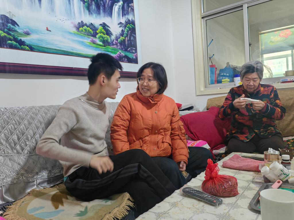 李彤(中)走访心智障碍者家庭。新华社记者 李志浩 摄
