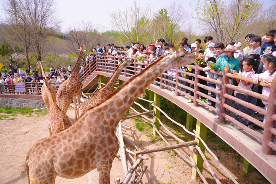 此外,应急广场的踏青运动会设置记忆扑克、点球大战等趣味项目,让大小朋友同场竞技;吉象领地长颈鹿互动区、车行区黇鹿广场等成为网红打卡点,新生棕熊宝宝“憨憨”首次近距离亮相,凭借软萌模样成为园区人气新星,百花争艳的园区环境更让游客在与珍禽异兽相伴中感受春日生机。