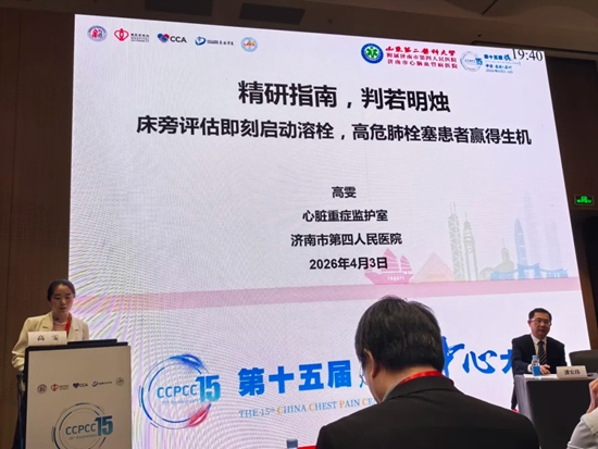 4月3日到4日,第十五届胸痛中心大会在香港与深圳双城联动开幕。山东第二医科大学附属济南市第四人民医院凭借在急性胸痛救治领域的不断努力与规范管理,荣获2025年ACS患者全流程规范化管理先锋单位称号;CCU(心脏重症监护室)主任高雯在会上分享了一例成功救治极高危肺栓塞的病例。