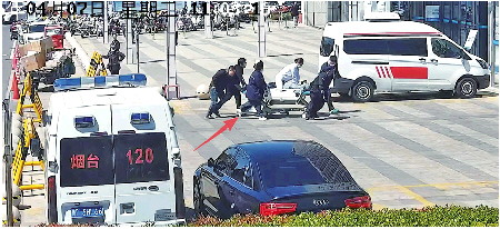 说时迟那时快,10点58分,王大鹏冲出店门,向着百米外的业达医院急诊医学科狂奔,借担架车。