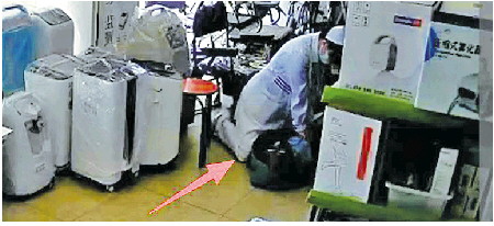 当天上午,一男子走进位于烟台业达医院南门外的一家医疗器械店内办业务。10点57分,他毫无征兆地突然摔倒,从椅子上滑落倒地。