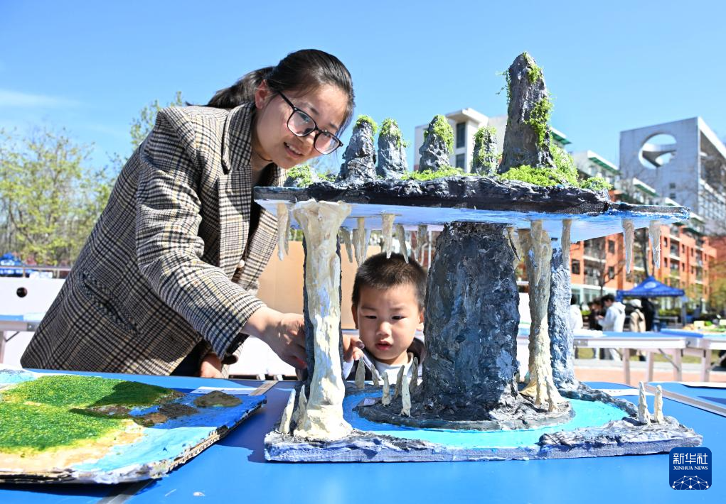4月19日,参观者在地质模型制作大赛上参观。新华社记者 李紫恒 摄