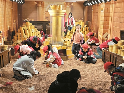 ■小朋友们在金库文博馆体验“沙里淘金”。