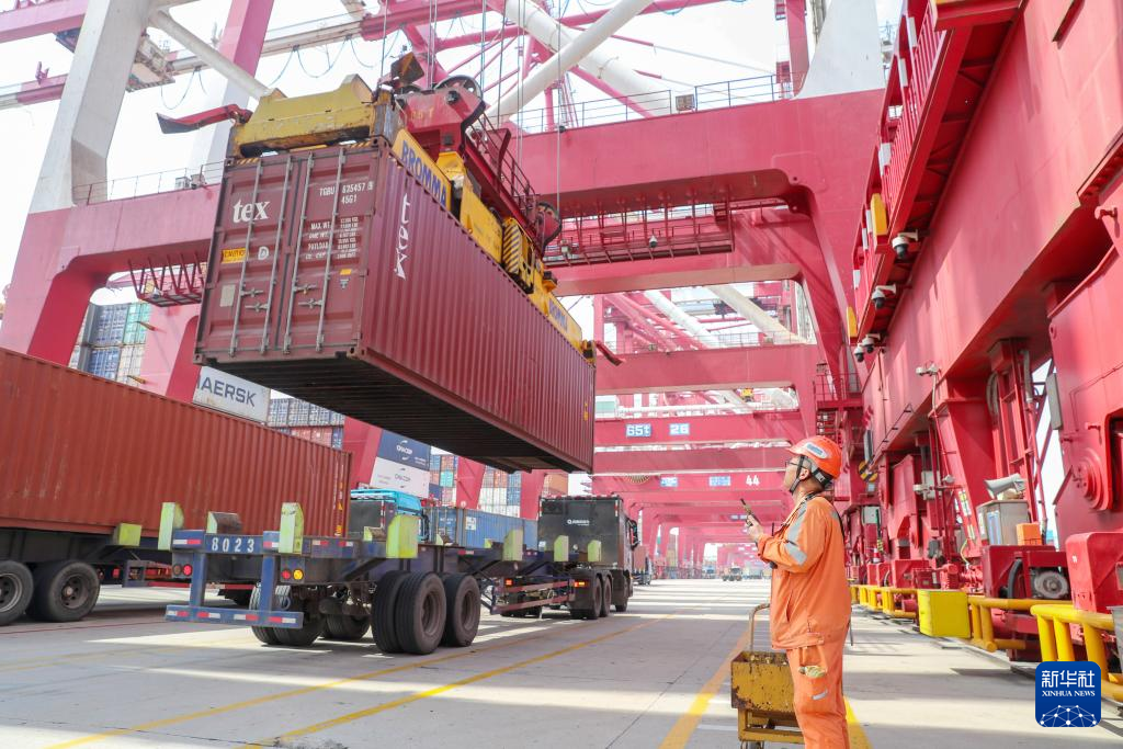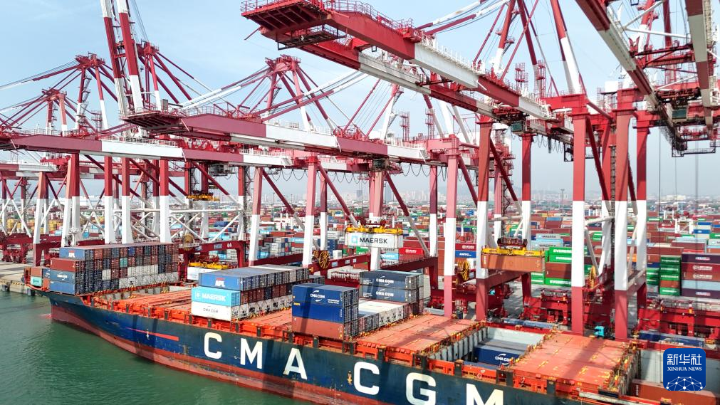 4月26日,山东港口青岛港开通西非新集装箱航线。该航线共投入13条船舶,实行周班常态化运行。目前,青岛港非洲集装箱航线已达11条,覆盖东非、西非、北非等市场,进一步拓宽了中国和非洲之间的海上物流通道。新华社发(张进刚 摄)