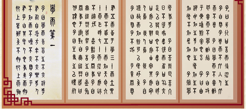 直到有一天,他萌生了要学书法的念头。然后按照自己的喜好,开始一笔一划的临写李斯的小篆峄山刻石。