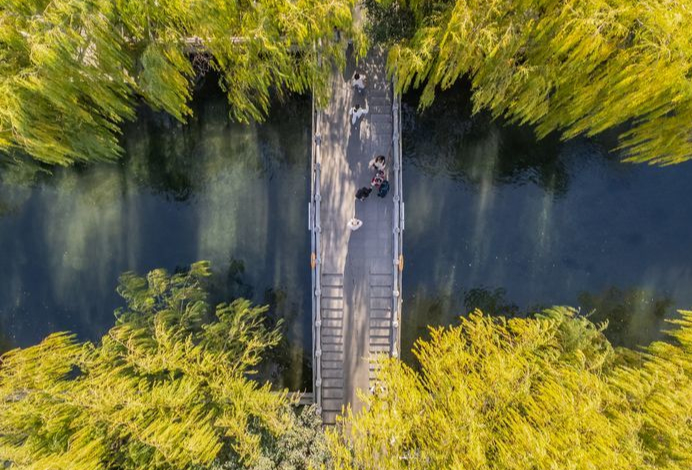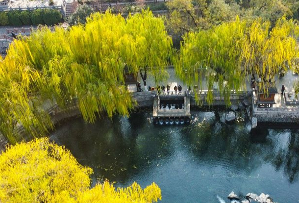 五龙潭水杉翠柳相映,红绿相间扮靓济南冬日
